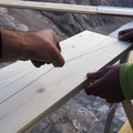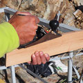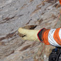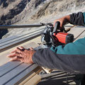 Hier ils ont bien avancé en commençant par sécuriser la plus grosse écaille menaçante (3 à 4 mètres cubes). Aujourd'hui ils vont installer un filet provisoire (10mx5m) pour protéger le refuge pendant les opérations de purge. Dés que la protection sera en place, dans le refuge, nous allons complètement vider la cuisine puis la cabane extérieure en vue des prochains travaux.