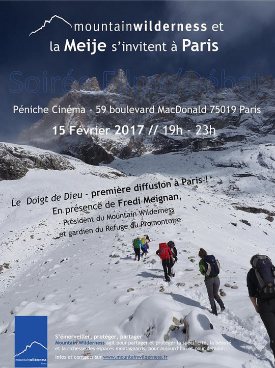 Et si par hasard vous étiez parisien (?), vous pouvez noter cette date : jeudi 15 février 2018, nous pourrons nous croiser sur une péniche cinéma pour une belle soirée montagne initiée par Mountain Wilderness avec notamment la projection de l'excellent film "Le Doigt de Dieu". A jeudi 15 à Paris... !