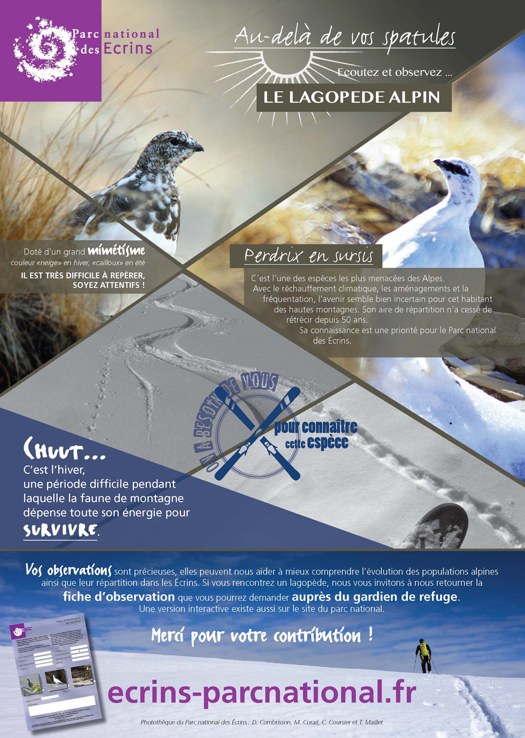 Skieurs de randonnée, amoureux des espaces sauvages et d'altitude des Écrins, soyez des alliés pour la connaissance de cette perdrix des neiges et la préservation du milieu