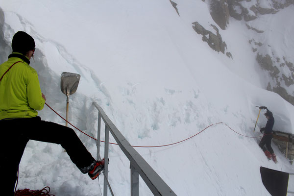 A 4h30 nous avons réveillé nos 14 skieurs de rando. A cette heure-ci ils sont déjà tous passés au refuge de l'Aigle et ont descendu le glacier de l'Homme (en bonnes conditions).