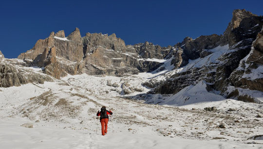 Une avalanche (modeste) à recouvert les traces de montée au refuge.